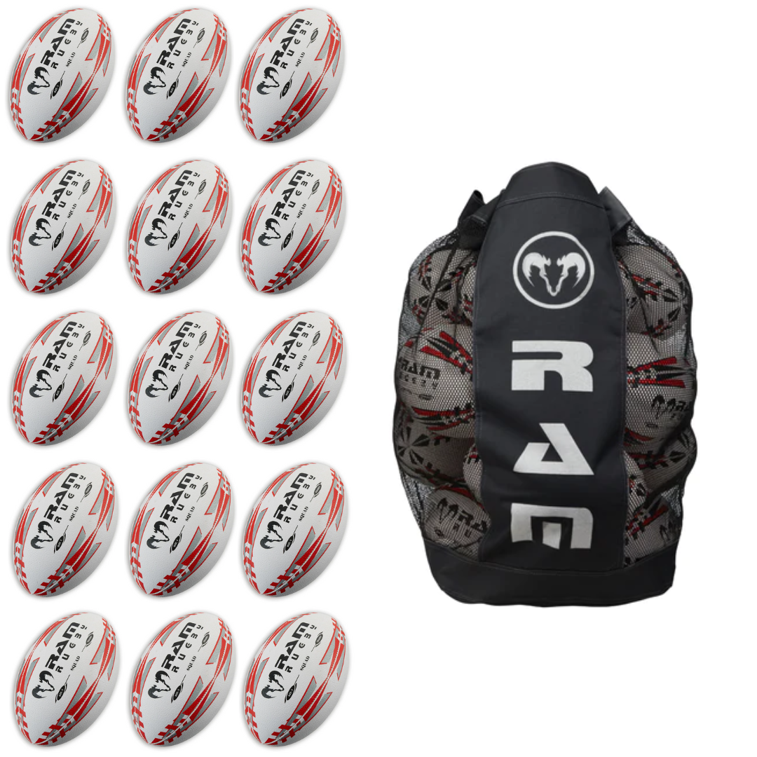 Ram Rugby Squad Trainer Ball Bundle 15 Bälle mit atmungsaktivem Sack