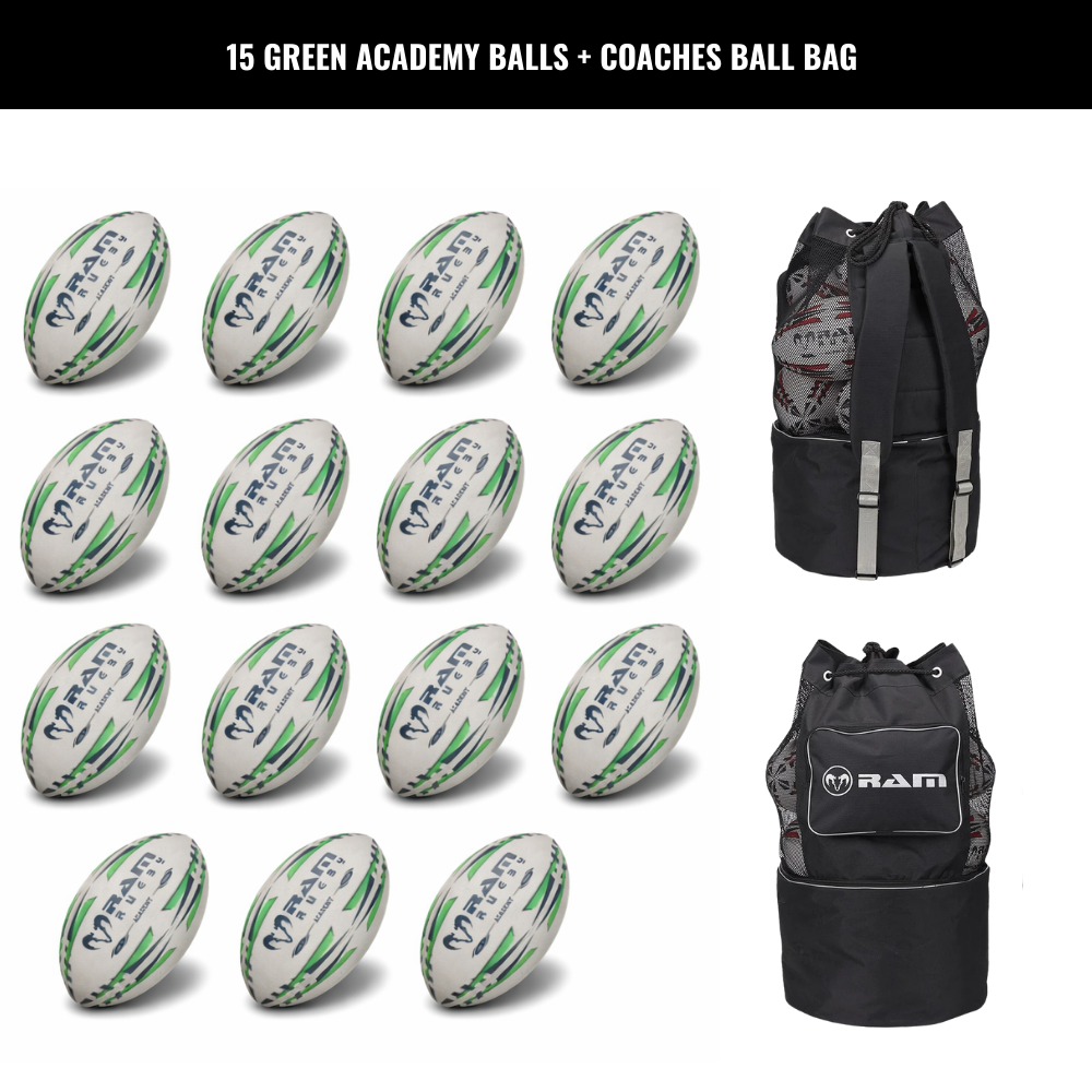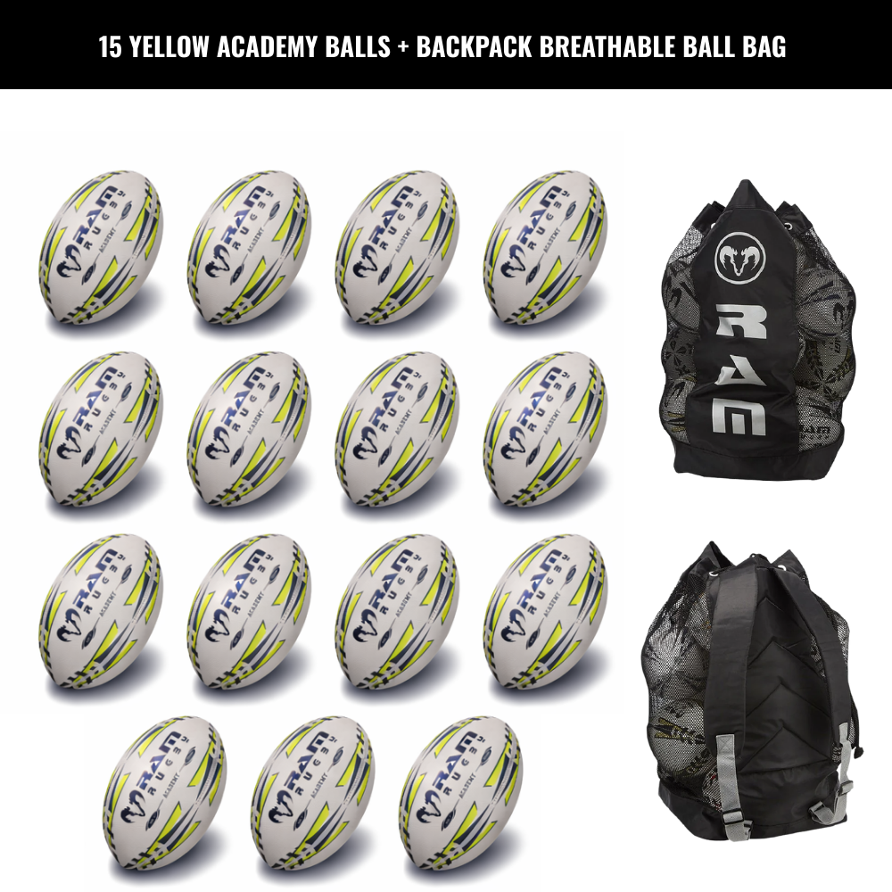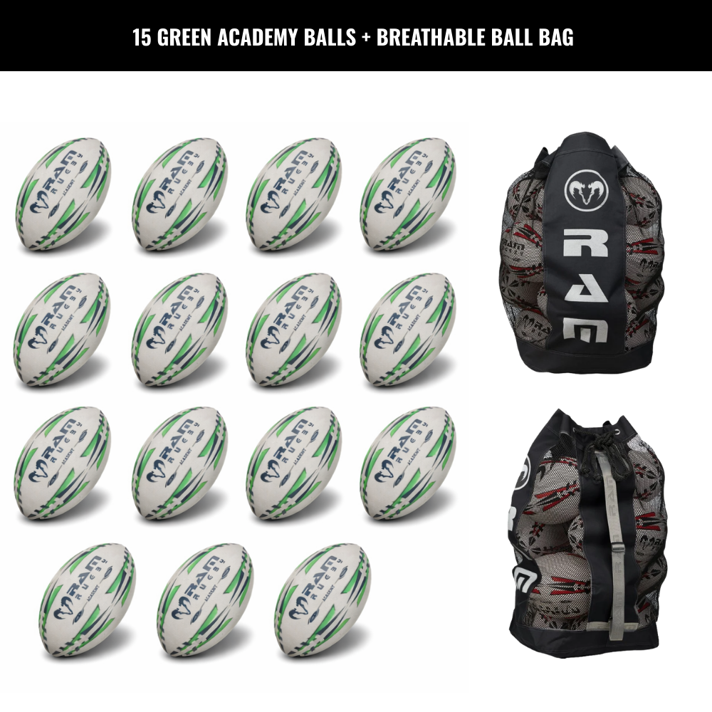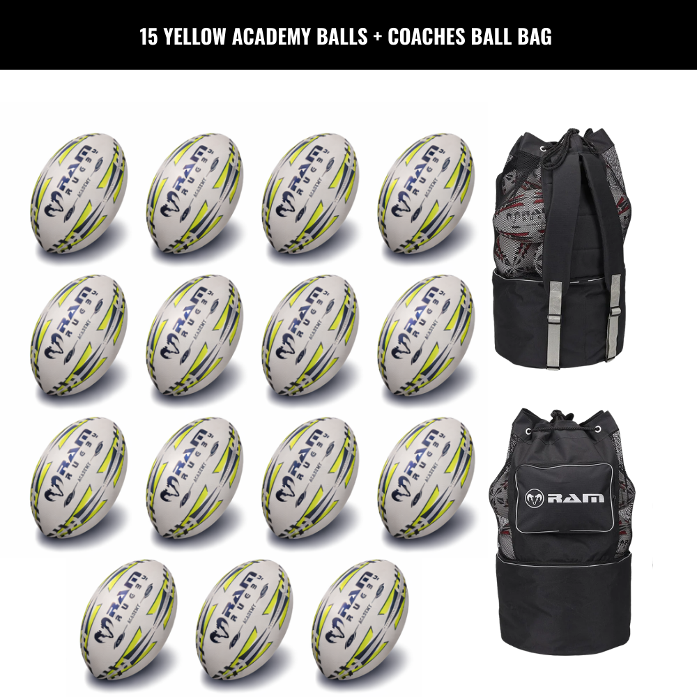 Ram Rugby Academy Trainer Ball Bundle 15 Pack mit Aufbewahrungstaschen